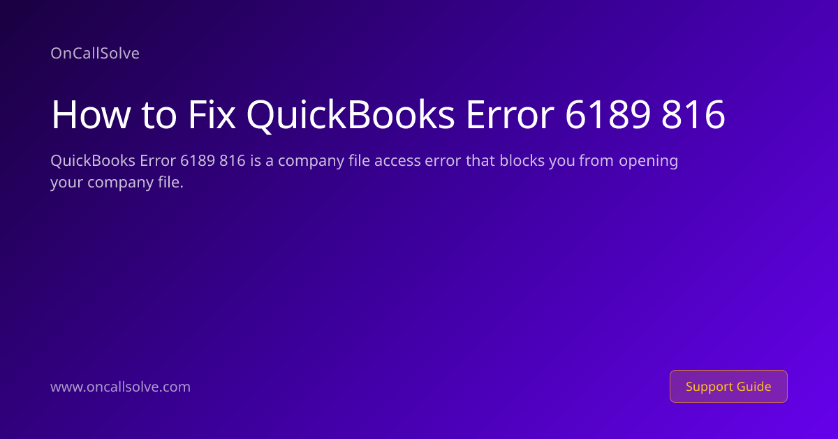 - Error 6189 816 means QuickBooks cannot access the company file because it is locked, corrupted, or stored in a location without proper permissions