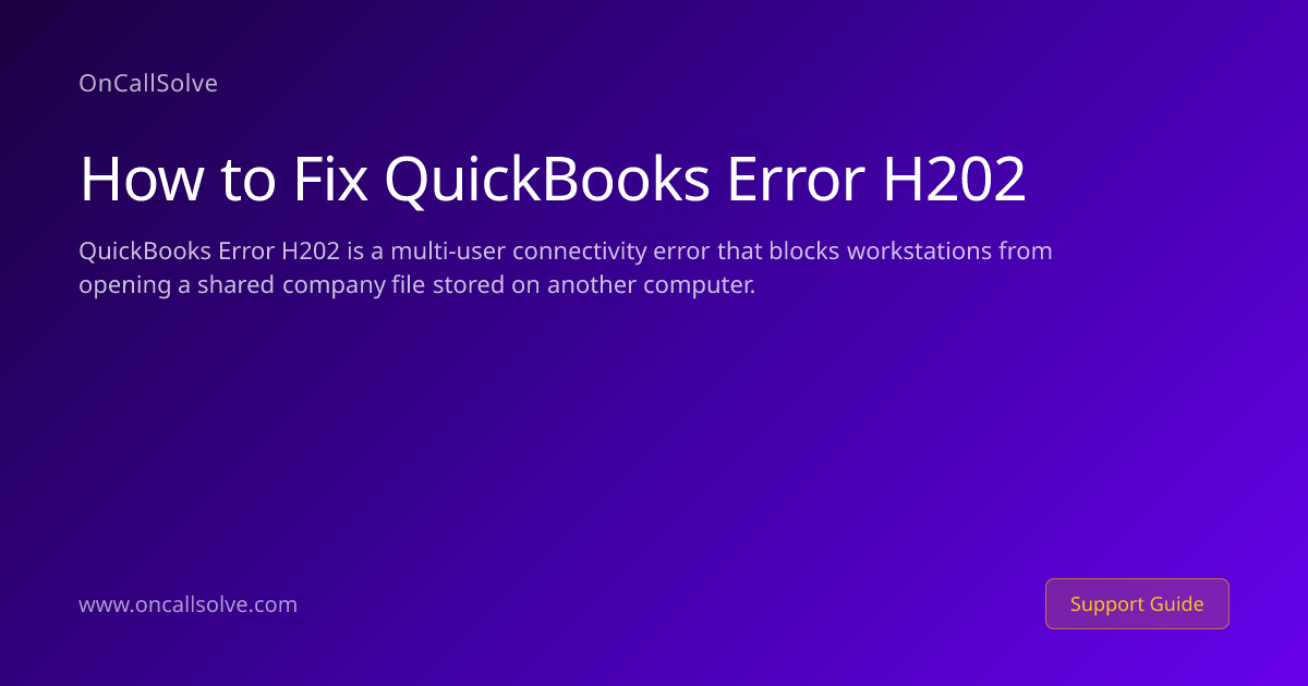 QuickBooks Error H202 is a multi-user connectivity error that blocks workstations from opening a shared company file stored on another computer. It appears immediately when you attempt to switch to multi-user mode and signals that the current machine cannot establish a connection to the host computer running the QuickBooks Database Server Manager. This guide covers all fixes verified on QuickBooks Desktop 2022 through 2026 on Windows 10 and Windows 11. Note: Error H202 affects QuickBooks Desktop on Windows only; it does not apply to QuickBooks Online or Mac versions.