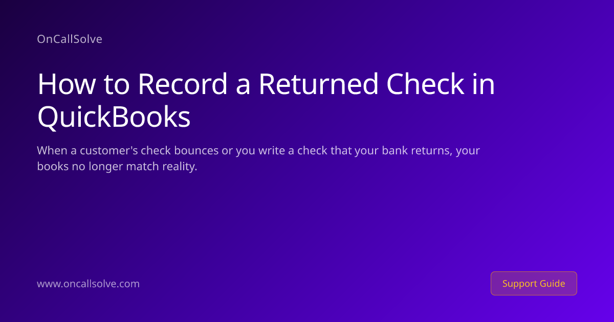 When a customer's check bounces or you write a check that your bank returns, your books no longer match reality. The payment shows as received in QuickBooks, but the money is not in your account. This guide covers all steps for recording returned checks in QuickBooks Desktop 2022 through 2026 and QuickBooks Online so your records stay accurate and your invoices stay collectible. Most cases are resolved in under 5 minutes using the built-in tools.