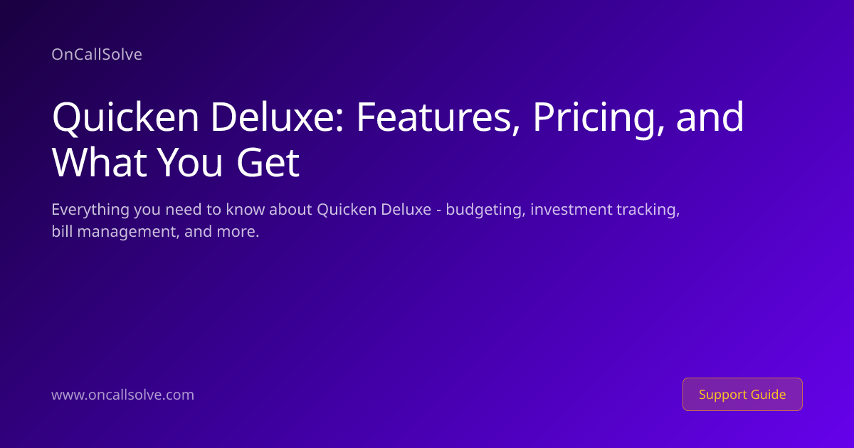 Disclaimer: OnCallSolve is not affiliated with Quicken Inc. Quicken is a registered trademark of Quicken Inc. Pricing and feature information is based on publicly available documentation from quicken.com and may change.