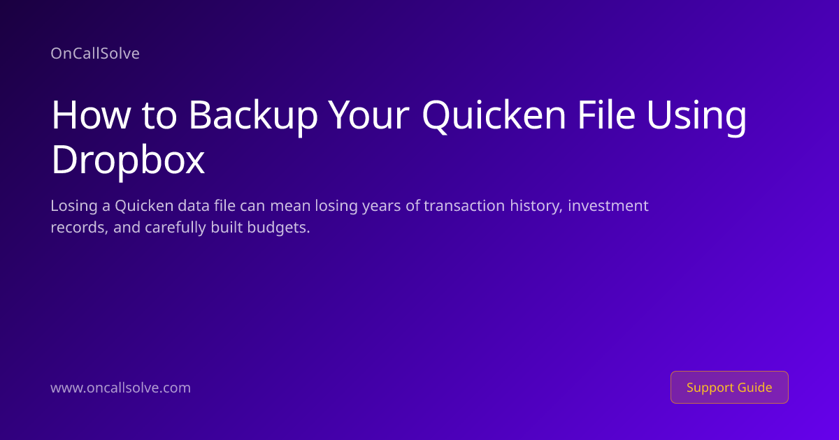 Losing a Quicken data file can mean losing years of transaction history, investment records, and carefully built budgets. According to data recovery services, hard drive failure accounts for over 40% of permanent personal finance data loss cases. Dropbox offers a straightforward way to keep a continuously updated copy of your Quicken file stored safely in the cloud and accessible from any device. This guide explains exactly how to back up your Quicken file to Dropbox on both Windows 10/11 and Mac (Quicken 2024/2025), how to configure Quicken's automatic backup to point to a Dropbox folder, how to restore a file when something goes wrong, and what practices to follow to keep your financial data protected over the long term.